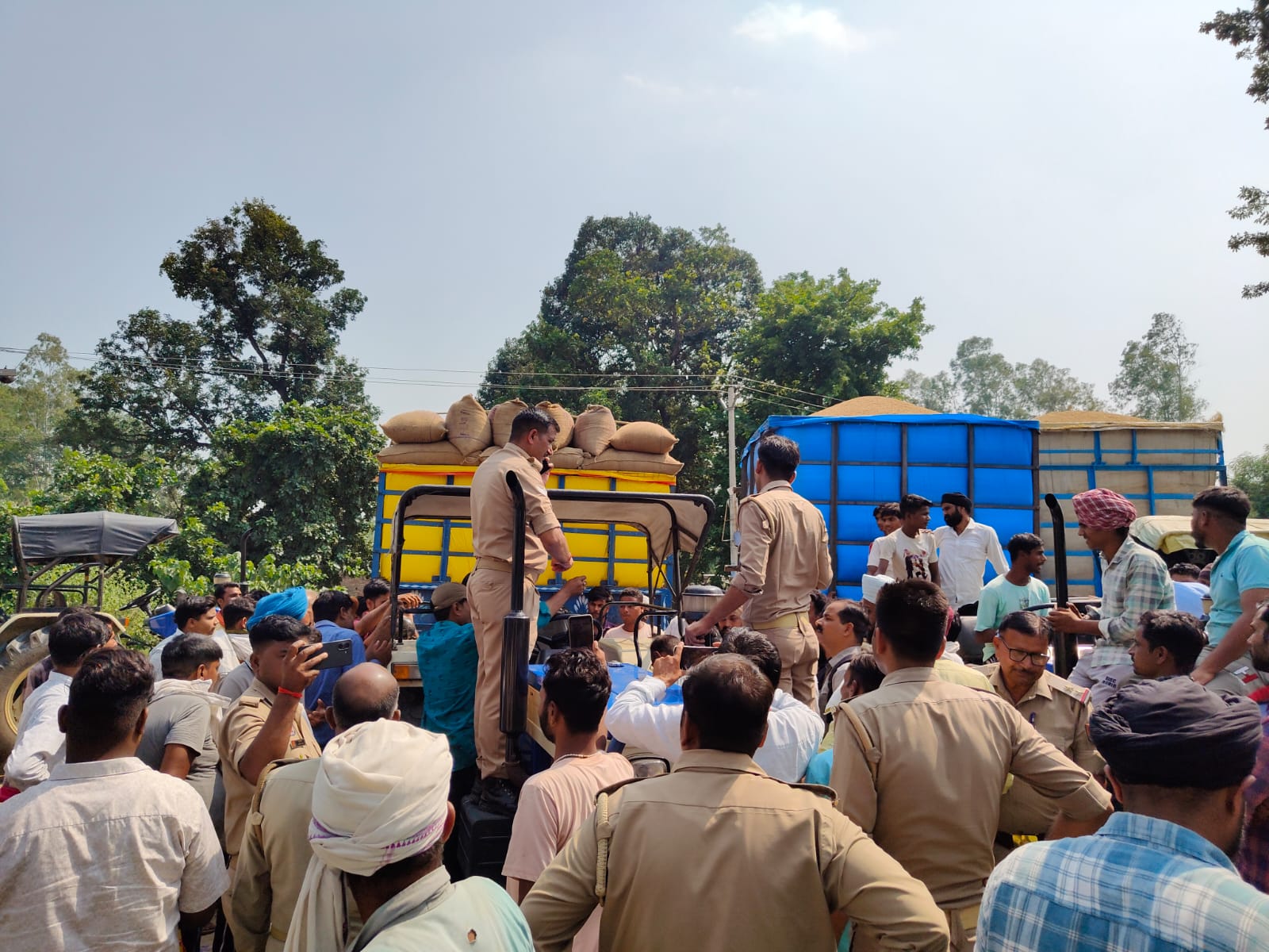 : दूसरे जिले से आ रहे धान की ट्रैक्टर ट्रालीयों को भाकियू कार्यकर्ताओं ने रोका