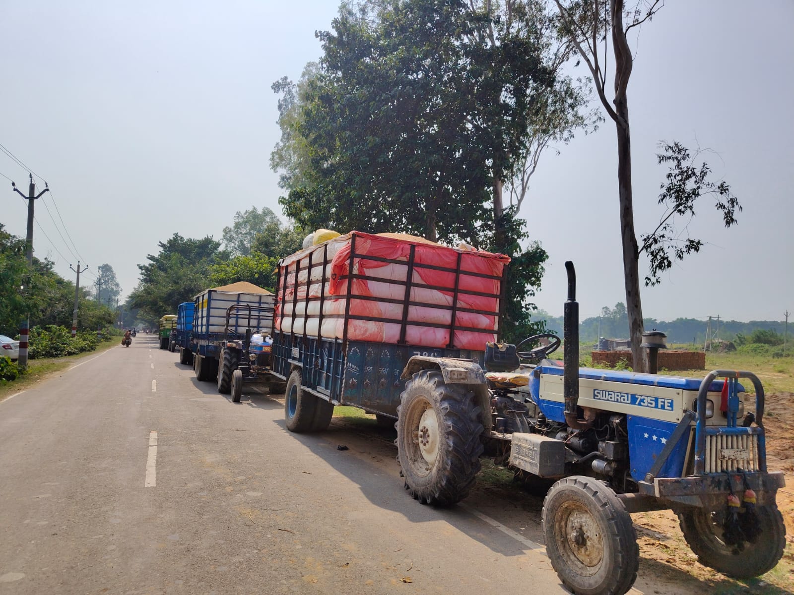 : दूसरे जिले से आ रहे धान की ट्रैक्टर ट्रालीयों को भाकियू कार्यकर्ताओं ने रोका