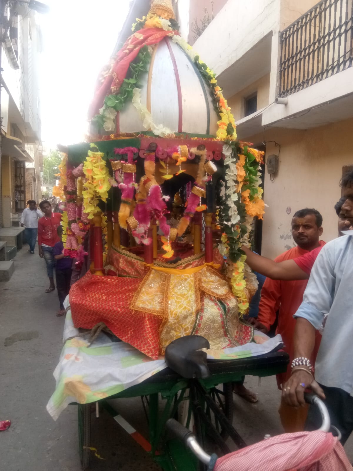 शोभा यात्रा का जगह-जगह पुष्प वर्षा के साथ स्वागत किया गया।